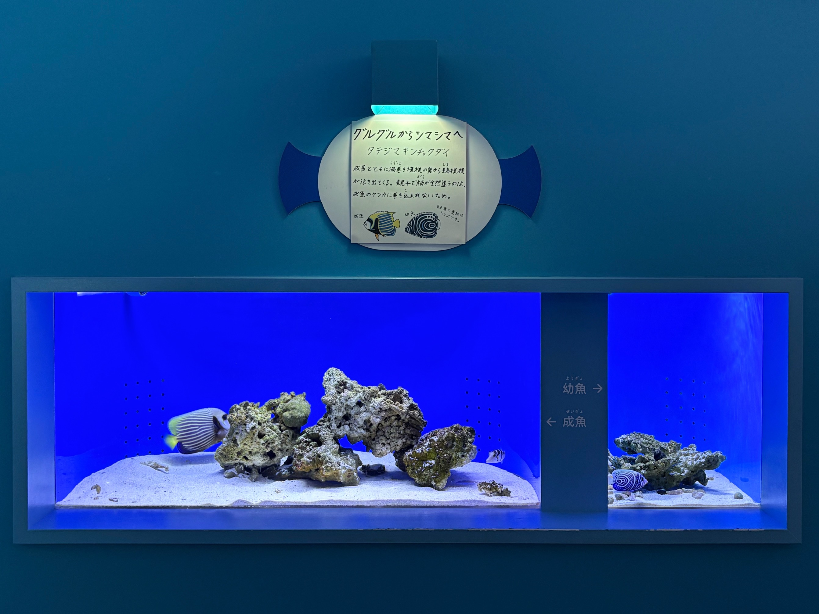 建物の3階にある小さな水族館ですが、幼魚の魅力を多方面から見ることができる水族館になっています。
